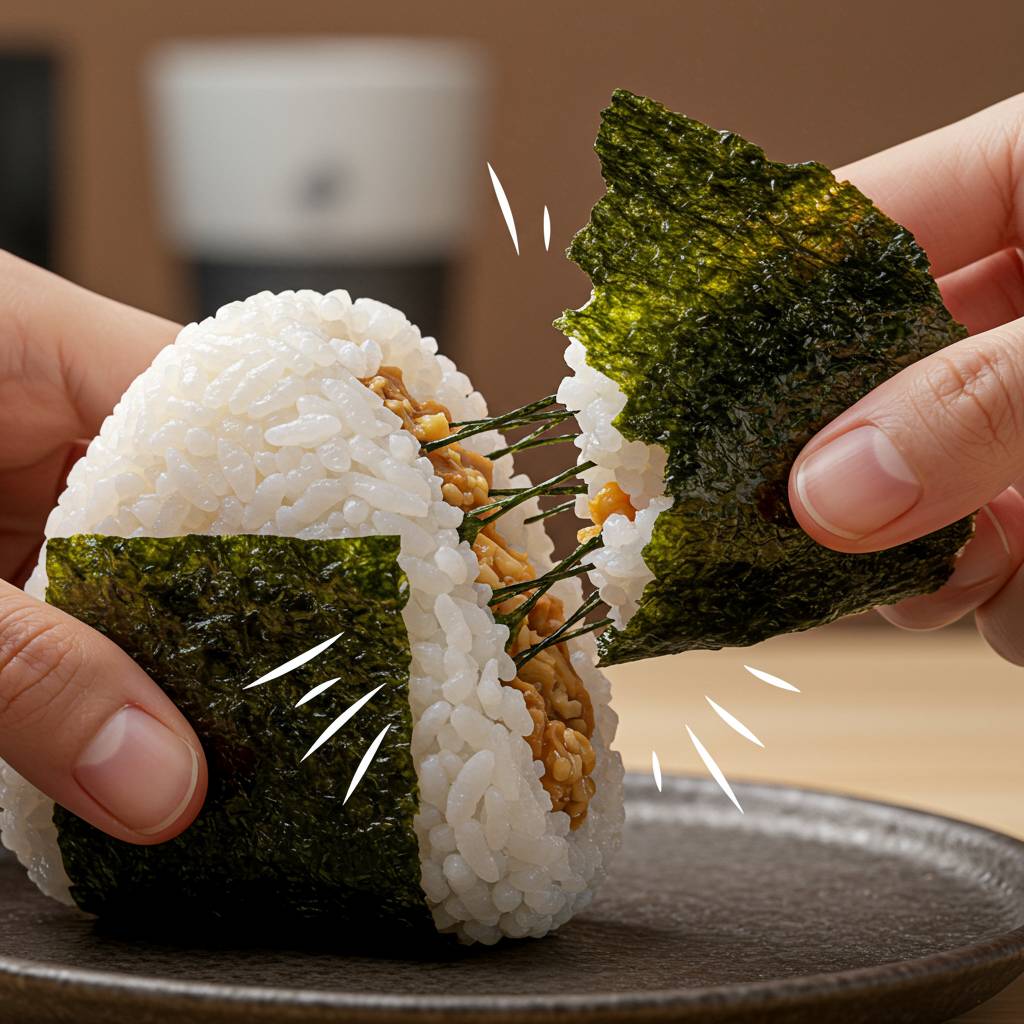 実はこの「パリパリ海苔」、日本の食文化において比較的新しい概念なんです。昔ながらのおにぎりは、海苔が湿気ってしっとりしていることが多かった。でも現代の技術革新で、いつでもどこでもパリパリ海苔を楽しめるようになりました。